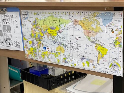 地図。そうそう。家庭に地図が貼ってあるって素敵ですよね。ちょっとした親子の会話から、すぐ地図帳が取り出せるリビング、すぐ辞書が取り出せるリビング。も素敵ですよね。これね~スマホじゃない方がいいんですよね。追加情報というか、なんというか。つ…