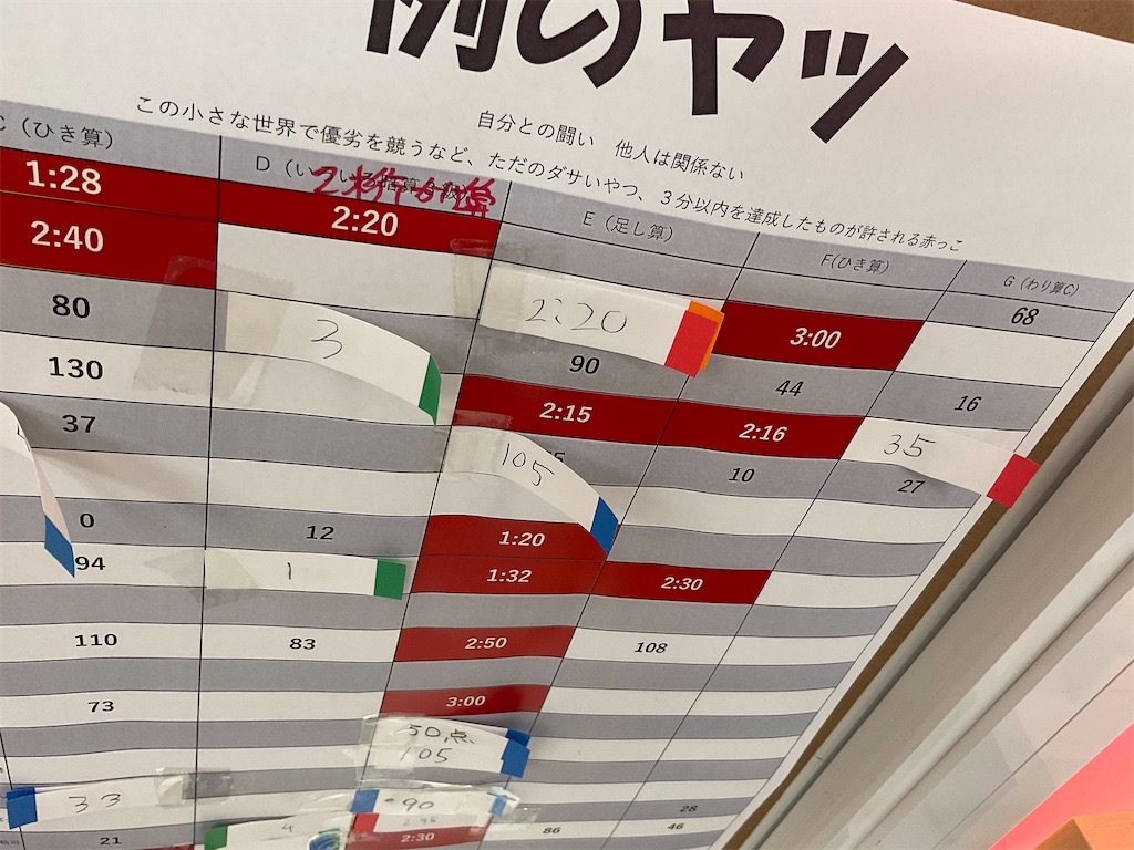 2023-04-27 計算バトル 例のヤツ 100マス計算みたいなノリだけど。100マス計算みたいに単純じゃない。それが計算バトル「例のヤツ」 敵は、昨日の自分。昨日の自分より今日の自分。昨日の自分に勝つのです!!自己ベストの更新!!